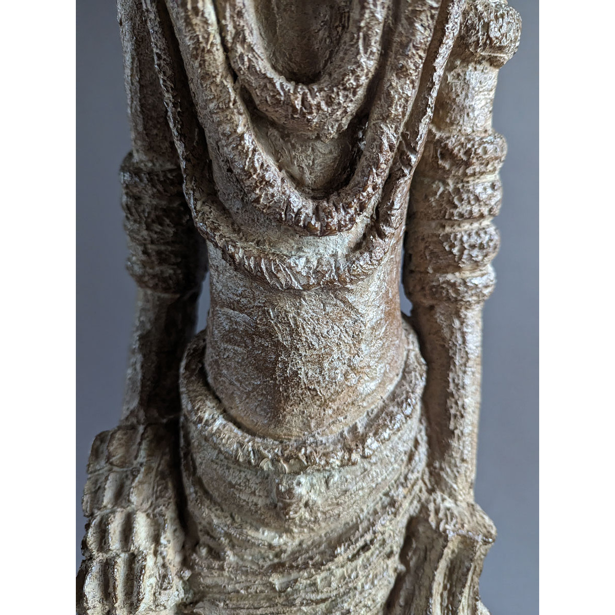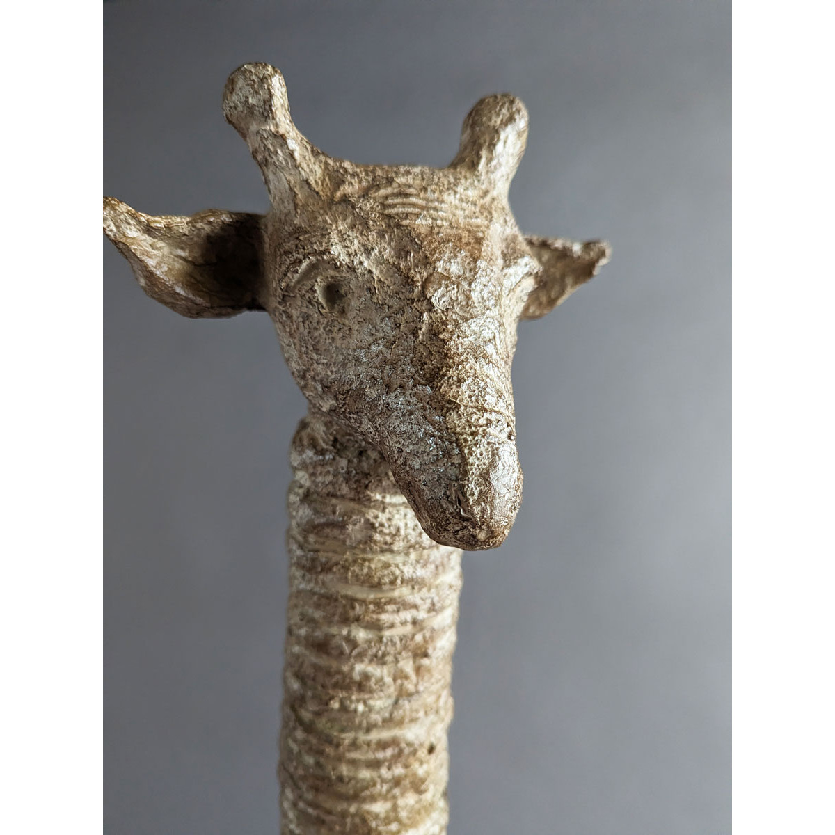 Le long cou de ma girafe, femme africaine au pagne modelé au bâton évoquant l’écorce d’un arbre (comme un ancrage à sa terre), lui permet décidément d’entrevoir des horizons plus étendus!